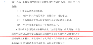 1.国家承认学历的应届本科毕业生(含公办普通高校、民办普通高校、成人教育、电大等)及自学考试和网络教育届时可毕业本科生。考生录取当年入学前(具体期限由招生单位规定)必须取得国家承认的本科毕业证书,否则录取资格无效。