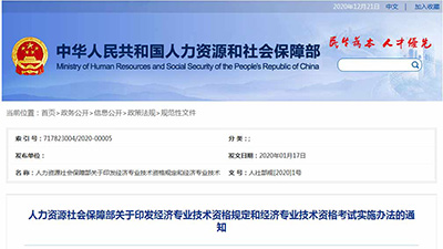 经济专业技术资格实行全国统一考试制度,由全国统一组织、统一大纲、统一试题、统一评分标准。资格考试设置两个级别:经济专业初级资格、经济专业中级资格。参加考试并成绩合格者,获得相应级别的专业技术资格,由人事部统一发放合格证书。人事部制订了《人事部关于印发<经济专业专业资格考试暂行规定>及其<实施办法>的通知》(人职发[1993]1号),决定在经济专业人员中实行中、初级专业技术资格考试制度。考试工作由人事部和部分专业主管部门负责,日常工作由人事部人事考试中心负责。